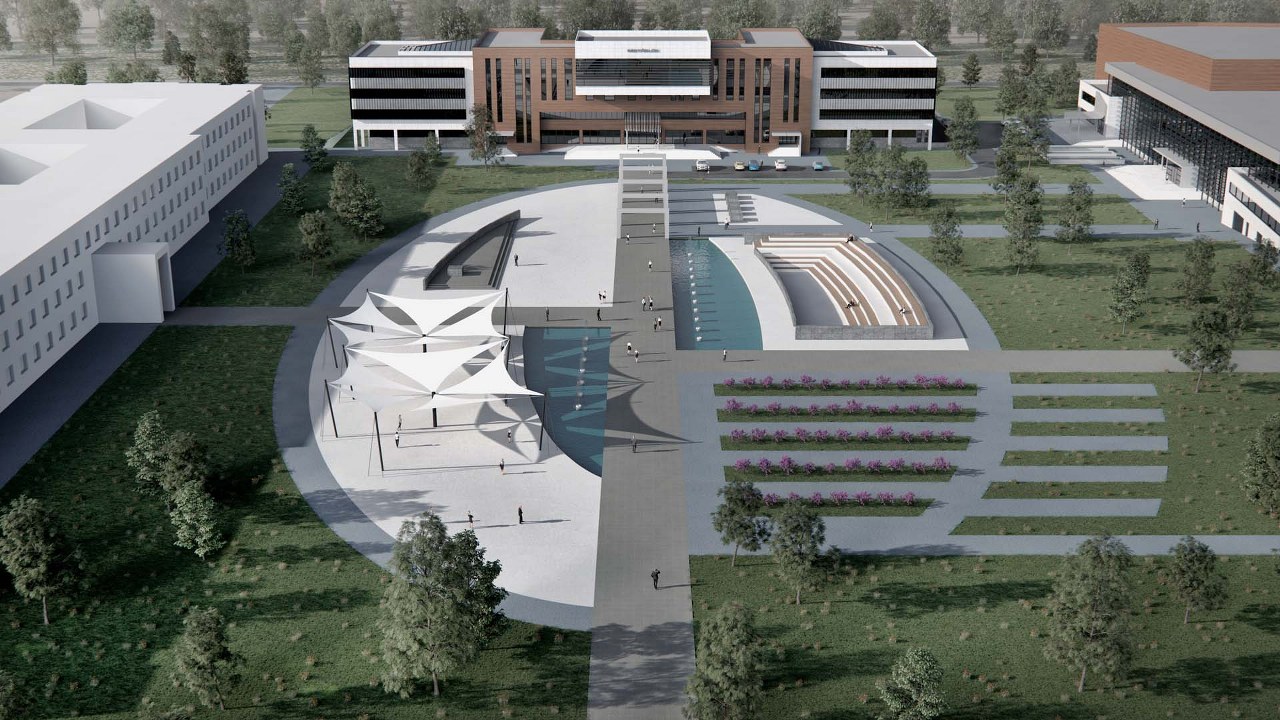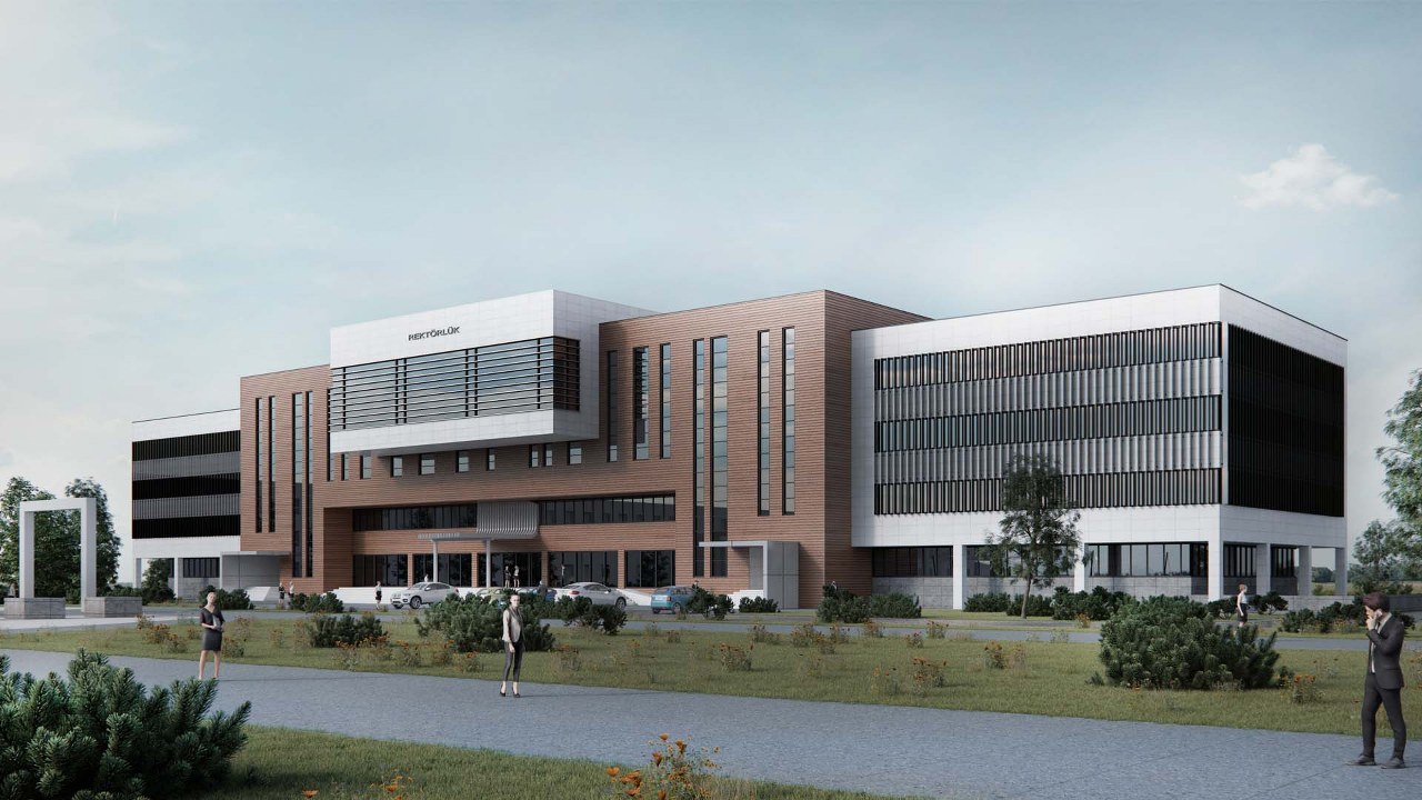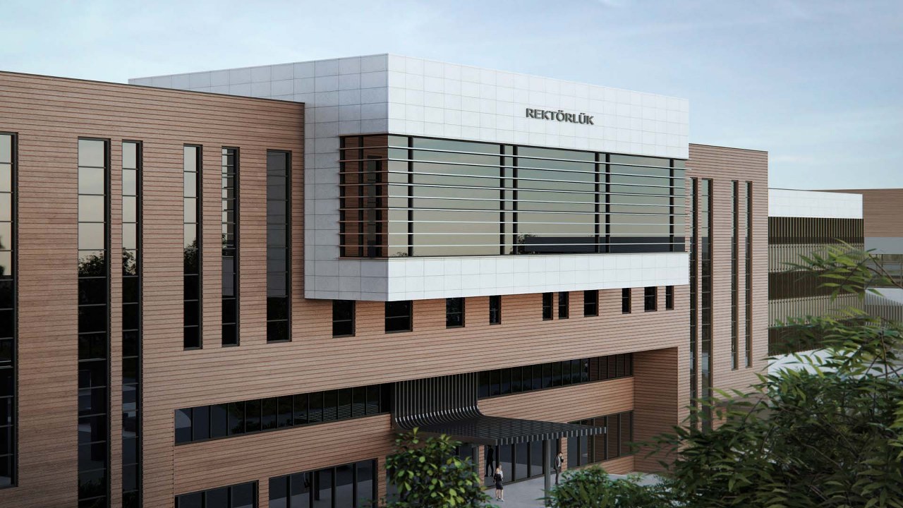 Erzincan Üniversitesi Rektörlük binası; Erzincan Üniversitesi yerleşkesi içerisinde, Kültür Kongre Merkezi yapısının yanında konumlanmaktadır. Rektörlük binası işlevi gerekleri doğrultusunda daha masif ve yatayda baskın kütle hareketiyle alana hâkim olmayı hedeflemektedir. Plan düzleminde iki ana aks üzerine kurgulanmıştır. Giriş aksı yapının simetri ekseni konumundadır, dolaşım alanları da bu aks üzerinde çözülmüştür. Yapının büyük kısmını oluşturan uzun aks boyunca ofisler, müdüriyetler gibi birimler bulunmaktadır. Galeri boşluğu 4 kat boyunca devam etmekte ve hacimleri birbirine bağlamaktadır. Yapı yaklaşık 16.000 m² kapalı inşaat alanına sahiptir.