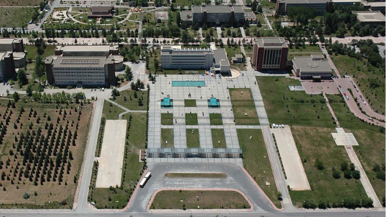 2005 yılında hizmete açılan ve Prof. Dr. Gönül Evyapan’ın tasarladığı Kütüphane Binası ve yerleşke içi taşıt yolu arasında bağlantı kurup öğrencilerin ana yaya allesine geçişlerini sağlamak amacıyla tasarlanmış olan meydan aynı zamanda bir açık hava müzesidir. Meydan, otobüs indirme alanı ve giriş arkadı ile başlayıp seviyelenerek kütüphane binasına ulaşmaktadır. Her seviyede bulunan farklı geometrilerdeki havuzlar, su ve ışık oyunları, kütüphane binasını cephesiyle bütünleşmektedir. Yaklaşık 30.000 m² alana kurulmuş ve 2008 yılında hizmete açılmıştır.